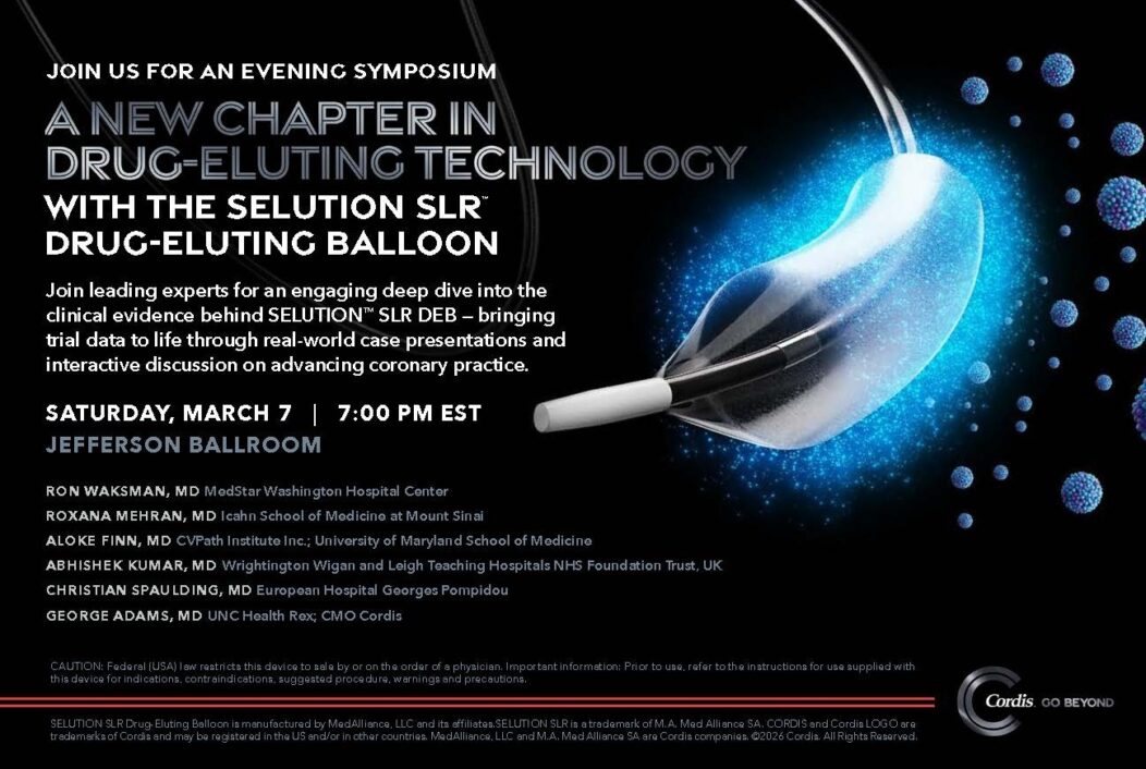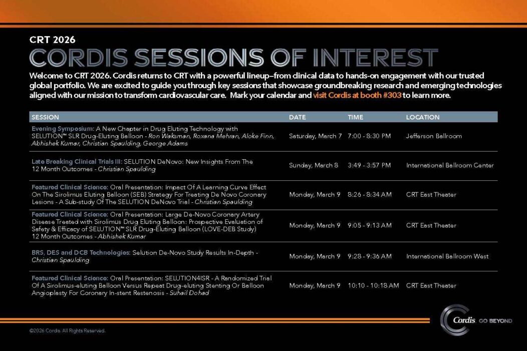 Visit booth #303 to learn about our portfolio of coronary, peripheral, and closure products. Cordis is also a proud co-sponsor of the CRT Endovascular & Cardiovascular Practicum.